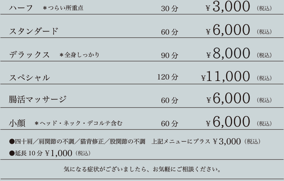 残業に疲れ、肩凝りや腰痛に悩まされながら、日々我慢する毎日を過ごしていました。そんな中、足を使う良いマッサージ店があると聞き行ってみることに。肩はかなり硬い状態でしたが、凝りが取れ、首の凝りもほぐしてもらい、すごくスッキリしました。足の力は手と比べて数倍あると聞きました。入浴中に自分で揉んで対処していたつもりが、単に誤魔化していただけだと思いました。また、腰痛は楽になったと感じただけかなと思いましたが、翌日に階段の上り下り、荷物を持つ、長時間のデスクワークなど、これまでの何気ない日常生活動作とは違い、全身が軽くなっていることに気づきました。私にとって足圧マッサージの効果は絶大だと思います。これからも継続して通い、体調万全を維持できるようにお願いしますね。