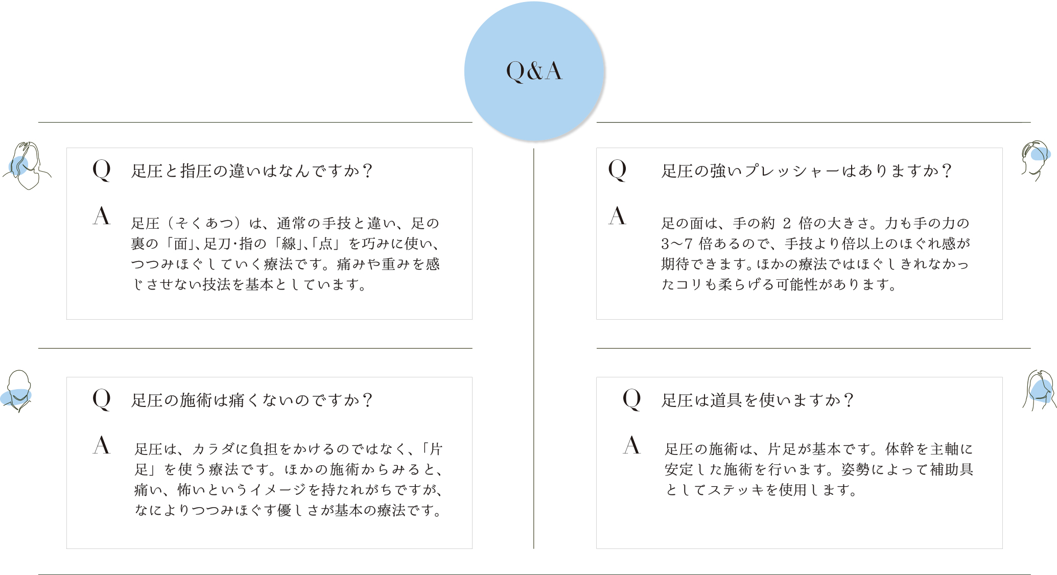 アスリートが利用する足圧マッサージをSNS で知りました。たまたま地元に足圧が受けられるお店があり訪れてみることに。足圧の施術とは、手を使わずに足のみなんです。まるで手でやっているかのような細かい足技で、全身がほぐされていく不思議な感覚に大変驚きました。話に聞くと、これまでにバスケットボールやバレーボール、サッカー元日本代表選手等もコンディションを整えるために取り入れているそうです。これからも仕事やスポーツで疲れた身体を定期的に整えてください。